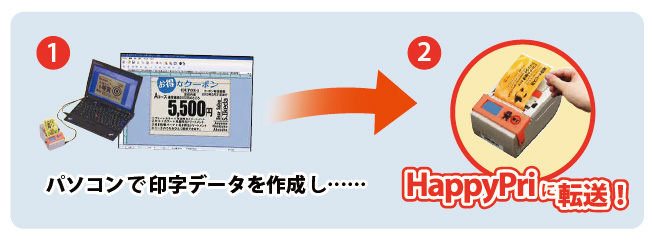 - 抽選印字データをHappyPriに登録すれば、パソコンなしで抽選券を発行できます。