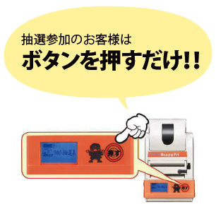 - プリントボタンを押すと自動的に抽選がスタートし!約1秒で発券します。