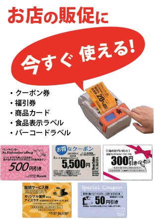 - 割引券、販促チケット、メッセージカードなど豊富なテンプレートを標準搭載。