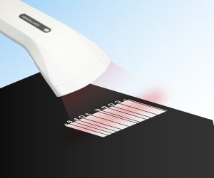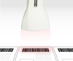 液晶画面に表示されたバーコードの読み取りが可能です。 - 鮮明な赤色LEDシングルラインエイミングにより、高視認性を実現しました。読み取り位置を容易に認識することができます。