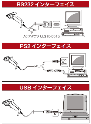 | (**) | メモ帳やEXCELといったアプリケーションソフトのカーソル位置にデータを入力したい場合は、キーボードインターフェイス又はUSBインターフェイス(USBキーボードインターフェイス)をご利用ください。 RS232CやUSBバーチャルCOMインターフェイスは動作が異なりますのでご注意ください。 |