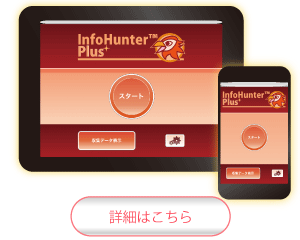 スマートフォン/タブレット専用 データ収集サポートアプリ「InfoHunter(TM)Plus」と連携すれば、機動力のある業務が遂行できます。