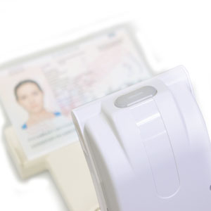 手に持ってのスキャンはもちろん。専用のスタンドを使えば読み取りやすい位置にパスポートをセッティングできるので、読み取り作業が手早く行なえます。
