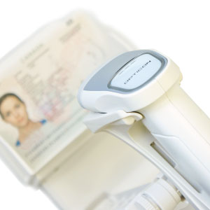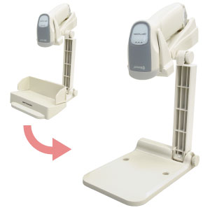 手に持ってのスキャンはもちろん。専用のスタンドを使えば読み取りやすい位置にパスポートをセッティングできるので、読み取り作業が手早く行なえます。