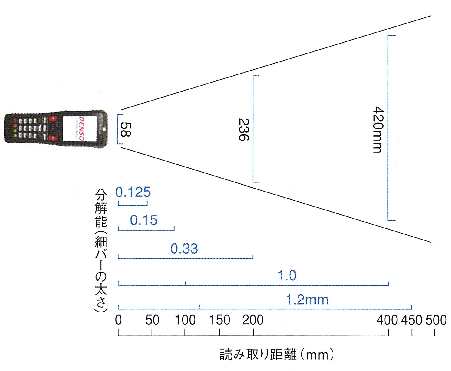 | (*1) | 3.5 秒に1 回読取(正常に読取できる位置にて)、バックライトレベル1の場合 約27時間動作 読取(正常に読取できる位置にて):無線通信:画面書換:待機 = 1:1:1:20、バックライトレベル1の場合 約20時間動作 |