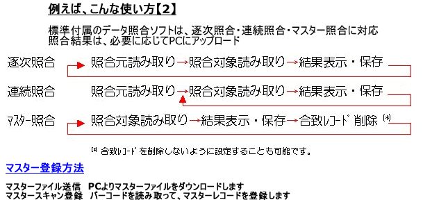 また、合致したレコードを削除する機能もあり、生産・医療現場での取り違えミス防止などに役立ちます。