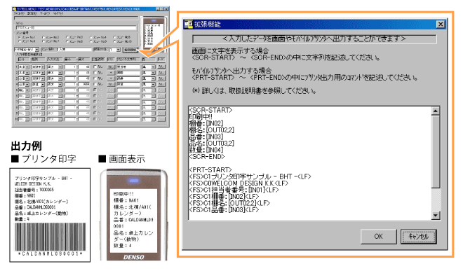 | 拡張機能 | データ収集後、画面やモバイルプリンタにデータを出力 | |