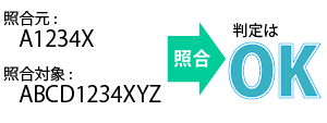 例)照合元の照合開始桁を2、照合対象の照合開始桁を5、照合桁数4、とした場合