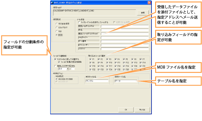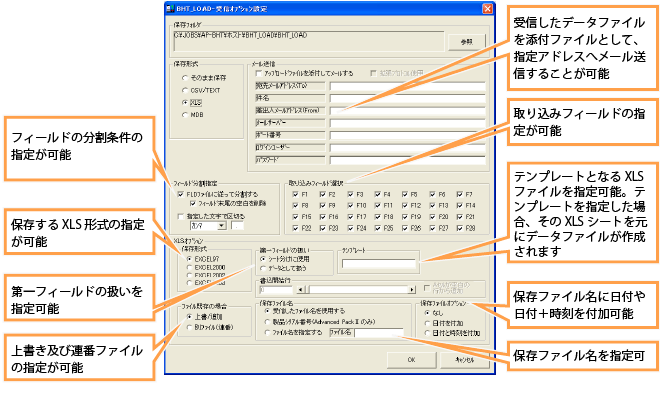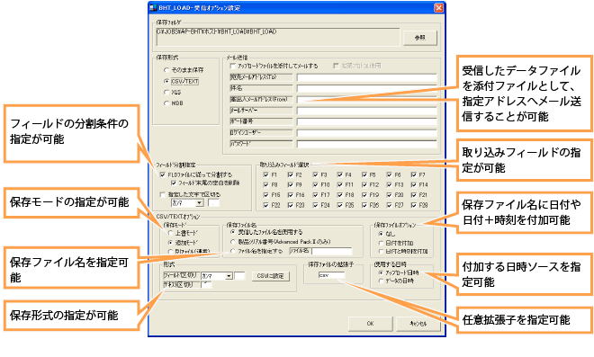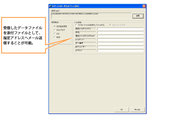 ハンディターミナル側のファイル仕様は、固定長形式となるため、CSV形式などの可変長のファイルの場合は、BHT_LOADで、固定長形式に変換後、ハンディターミナルにダウンロードします。