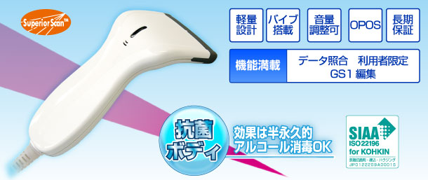 SSHC65シリーズは、銀の持つ抗菌特性を活かした無機抗菌剤ゼオミック(R)を採用した抗菌バーコードリーダーです。